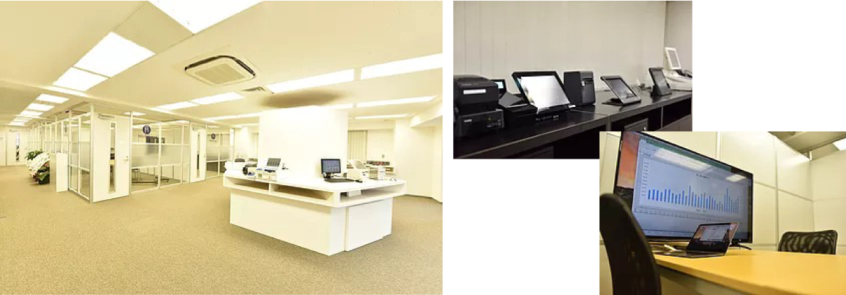 UNIPOS(ユニポス)はもちろん、テーブルオーダーシステムやiPadPOSレジシステム・メーカー製POS・予約、売上、勤怠、仕入発注システム・呼び出しコールシステムなど飲食店で必要なITシステムを一堂に展示し体験できるショールームをご用意しています。